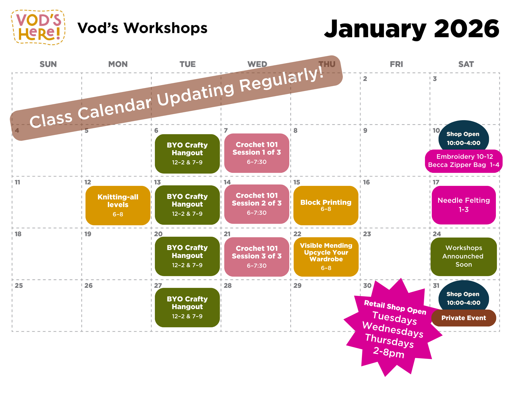 Workshop Descriptions Register for Workshop January View fullsize February View fullsize March View fullsize